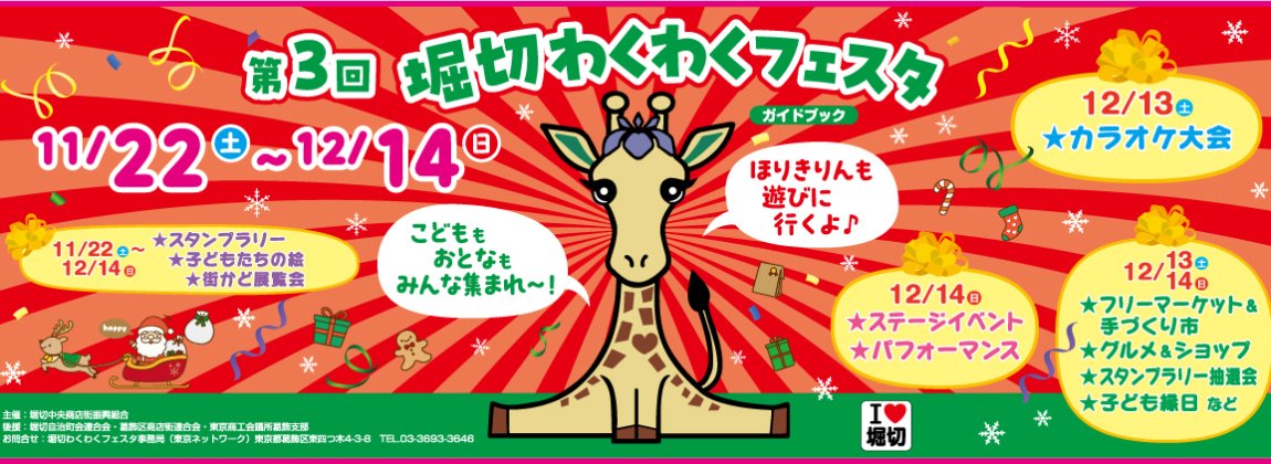 第3回 堀切わくわくフェスタカラオケ大会:2025年12月13日(土) 開催!フリーマーケット・グルメ&ショップ:2025年12月13日(土)・14日(日)ステージイベント・パフォーマンス:2025年12月14日(日)わくわくスタンプラリー:11月22日(土)…